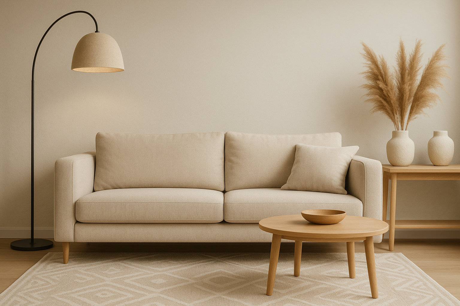 Mit einem Grundton startenWähle einen Anker (Sand, Steingrau, Taupe) und wiederhole ihn auf drei Flächen: Teppich, Vorhänge, ein großes Möbel (z. B. Sofa oder Kopfteil). Texturen statt Farben schichten Straff...
